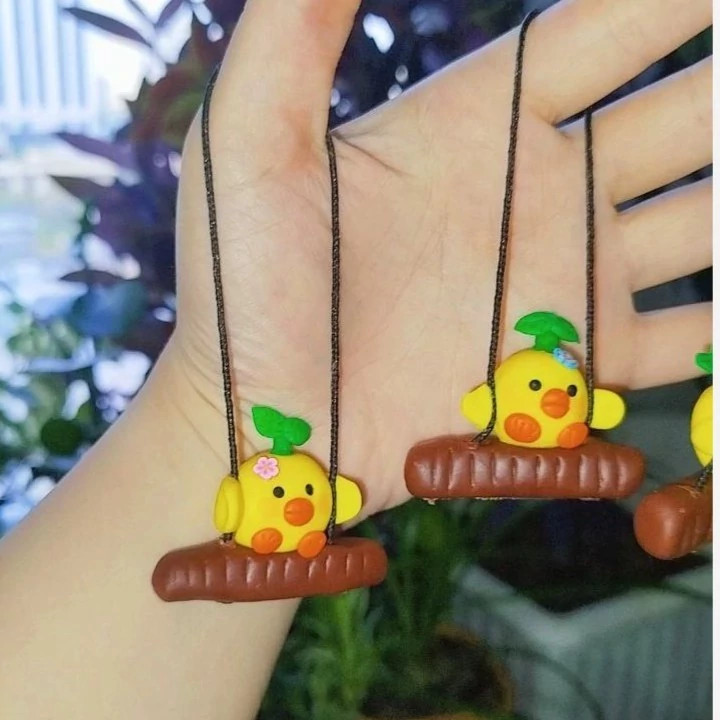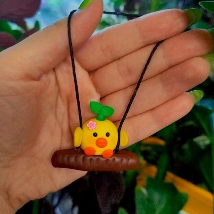 آویز کوچولوی بانمک برای آینهی ماشین، ساختهشده با خمیر پلیمری هواخشک. سبک، مقاوم و پر از شخصیت—همراهِ جادههات باشه!