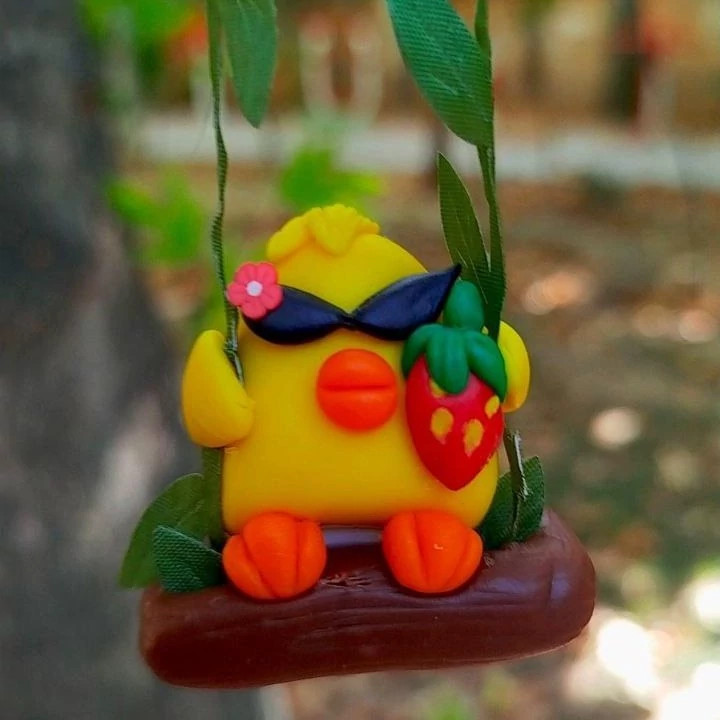 آویز کوچولوی بانمک برای آینهی ماشین، ساختهشده با خمیر پلیمری هواخشک. سبک، مقاوم و پر از شخصیت—همراهِ جادههات باشه!